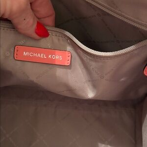 Michael Kors Kenny large logo tote bag with cream and pink design. Features signature MK pattern. Perfect for daily use. In excellent condition!!