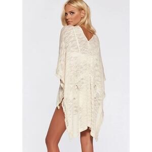 L Space Washed Ashore Knit Fringed Swimsuit Cover Up Poncho One Size
