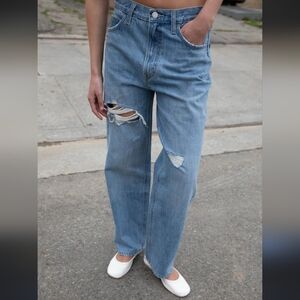 Oak & Fort medium wash straight leg,high rise,cropped distressed denim jeans 26