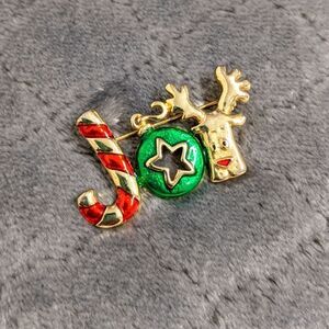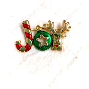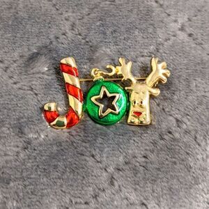 Vintage 1980's Christmas "Joy" Enameled and Goldtone Brooche