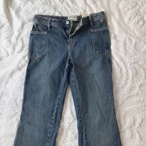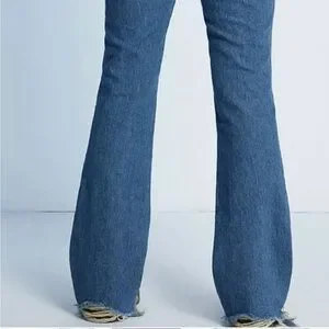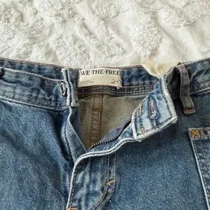Worn 3 times, still has tag attached to back. Chic dark blue flare jeans. We The Free ‘ Izzy ‘ Low Rise Flate Women’s Denim Jeans Size 24. Side pockets . Amazing 70’s vibe jeans- Nice vintage blue wash and frayed hem.