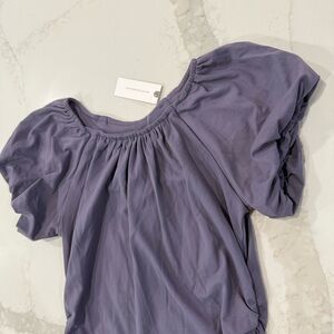 Anthropologie NWT Ruched Puff Cap Short Sleeve Top Women’s XS Lavender Purple