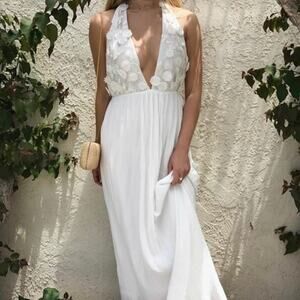 For Love and Lemon White Isabella Halter Maxi Dress size XS