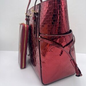 MICHAEL KORS Voyager Lg Metallic Logo Debossed EW Tote & Jet Set Lg Logo Wallet
