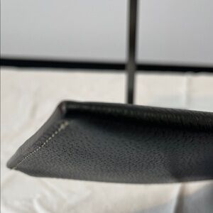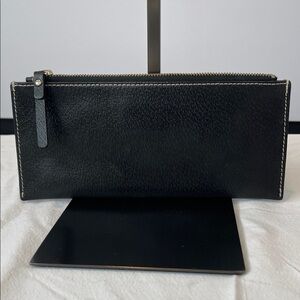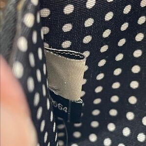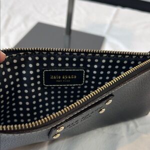 Black leather Coin Purse By Kate Spade. Fun Polka Dot interior, black and white satin interior. Zip top closure.