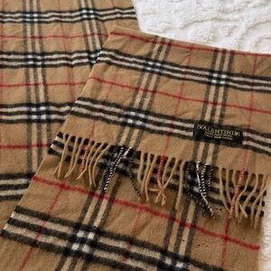 Elevate your style with this chic Valentini classic plaid scarf. It’s so soft! Classic tan, red & black plaid. Perfect for fall and winter. I have taken really good care of this scarf but there are some tiny hard to notice holes..Look through pictures carefully. Total length 11 x 56 inches. 100% Lana Wool. Made in Italy.
