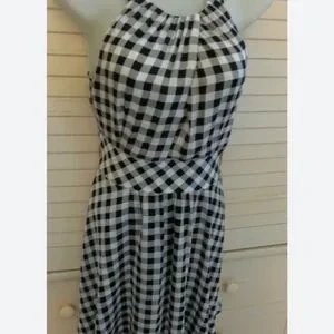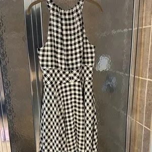 Chic gingham pattern. Halter neckline. Zip up the back and fitted.