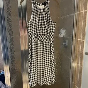 White House Black Market Black and White Gingham Midi Dress
