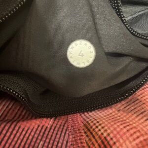 Lululemon Run Times Short II *4" Sun Dazed Multi Pink / Super Dark. Size 4. Stylish women's shorts featuring a vibrant multicolor geometric pattern. Perfect for casual outings or active wear.