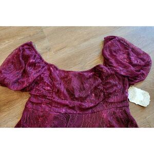 Wine colored lace dress. Nwt, in perfect condition. Pet friendly home and non-smoking home. Size large. Ties in back, elastic across the back. See photos.