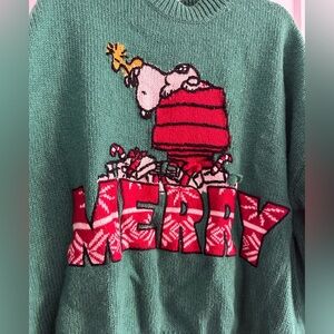 Zara Knit Snoopy Peanuts Merry Sweater Green Medium
