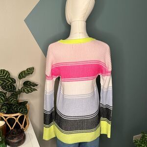 WISPR By Brodie Neon Pastel Colorblock Ribbed Knit Crewneck Striped Sweater M