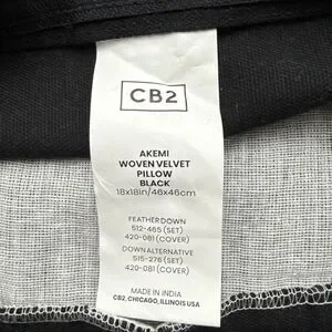 (2)CB2 Akemi Black Woven Velvet Decorative Throw Pillow Covers 18x18 100% Cotton