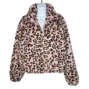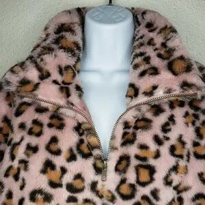 Know One Cares Women's Plush Leopard Print Full Zip Jacket, Pockets Sz M (1202)