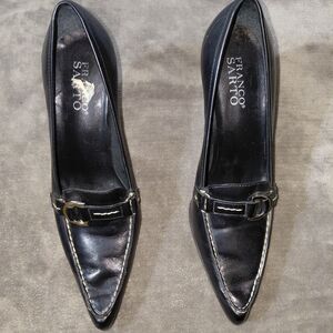 Franco Sarto Pump Heel Womens 8M Black Leather Pointed Toe High Stiletto Buckle