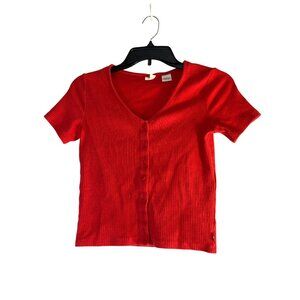 Levi’s Womens Top Cropped Button Ribbed Red V-Neck Button-Up Size XS