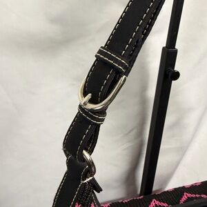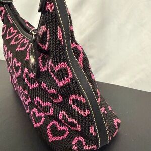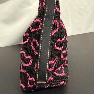 THE SAK Black Knit Shoulder Bag with Pink Hearts