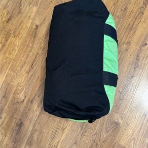 Gently used Lime green and black duffel bag by L.L. Bean. Ideal for travel and daily use. Durable and stylish. All zippers & clasps work. Could be thrown In the wash but no tears or rips