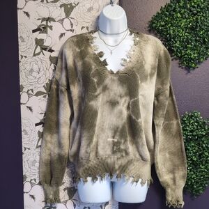 Fantastic Fawn Olive Distressed V-Neck Sweater