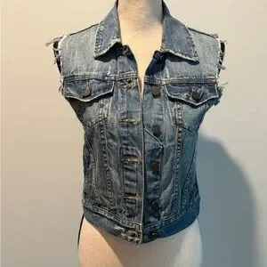 Pistola Denim Distressed Button Up Jean Vest Women’s size Small Pockets