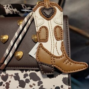 Betsy Johnson NWT Cowboy boot /cow print crossbody. Gold heart rhinestone stones. 3 compartments.