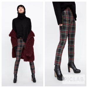 Zara Plaid Skinny Ankle Pants With Zipper Detail