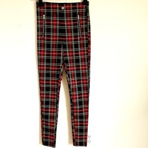 Zara Plaid Skinny Ankle Pants With Zipper Detail Size S EUC
