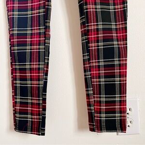 Keywords: Plaid Holiday Tartan Stewart Madras Checkered Checks Gingham Classic Preppy Ankle Crop Cropped Faux Zip Bodycon Fitted Leggings Legging Jeggings Jegging Skinny Fit