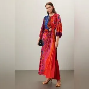 Brand new Farm Rio dress! Ordered for a beach wedding but went with a different option. Vibrant long sleeve dress with floral patterns. Features a side cut-out and tie detail.