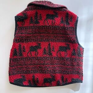 Cozy and stylish vest for kids. Red and black pattern. Perfect for layering. Size 2T- some mild pilling but still in great condition.