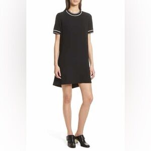 Elevated basics at their best 🤍 This Rag & Bone black knit t-shirt dress features a modern, minimalist silhouette with chic contrast white trim along the neckline and sleeves. Effortless, comfortable, and versatile — perfect for everyday wear, travel, or a polished casual look.