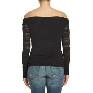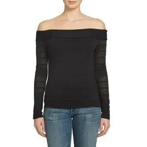 Show off your shoulders by day or night in a slinky stretch-knit top detailed with slender sheer metallic stripes throughout for a flirty finish by 1.State