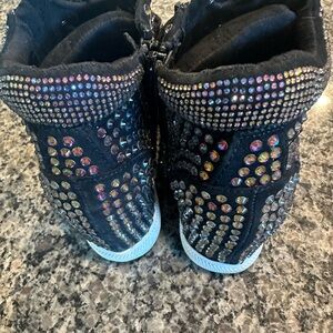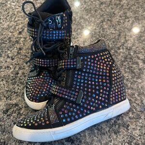 Stylish high-top sneakers with vibrant multicolor studs. Perfect for a bold fashion statement. Comfortable and trendy design. Actually a beautiful shoe