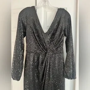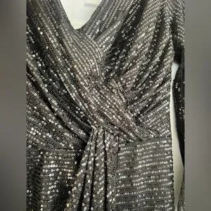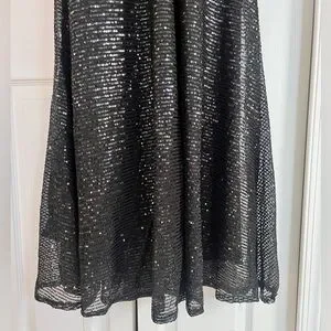 Shine in this elegant black sequin dress, perfect for any special occasion. The shimmering sequins add a touch of glamour to your look. Size is written in as an 8 but I feel it runs a size smaller.