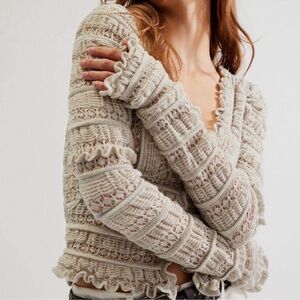 Free People Wild Roses Cardi in Grey