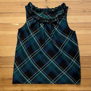 Talbots silk plaid ruffle neck shell. Size 0. Excellent condition. Wear alone or as a layer. Pink, green, blue, black plaid. Pop over.