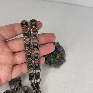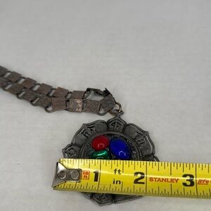 Antique 1900s Book Chain Multicolor Pendant Necklace Lot A40