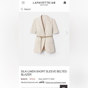 Lafayette 148 New York label. Their blazers generally retail over $1000, see screenshots. A similar short sleeve blazer is on sale for $700!