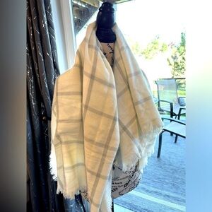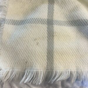 D02. 15 100% acrylic gray and cream pashmina. Small mark at one corner, (see photo)