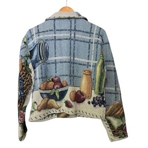 Vtg Tapestry Jacket Art-to-Wear French Country Still Life Woven Boxy Cottagecore
