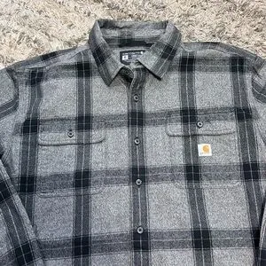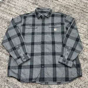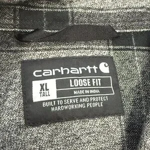 Carhartt Black and Gray Plaid Shirt heavy duty cotton sz XL TALL