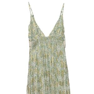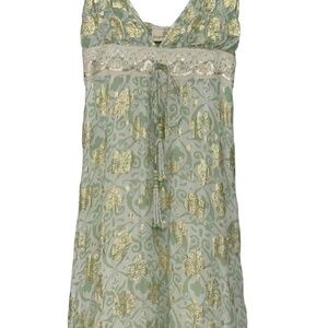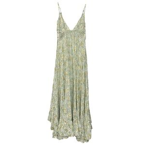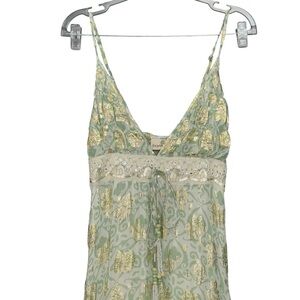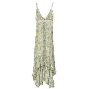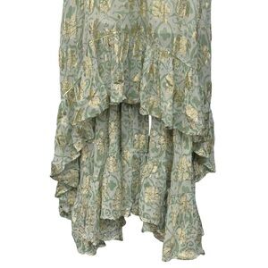 Siya Green Gold Floral Boho Maxi Dress High-Low Sundress Size M