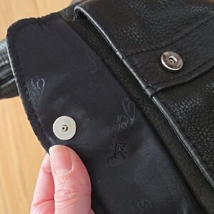 FOSSIL Vintage Black Leather Shoulder Bag Purse Cargo Pocket Solver Hardware
