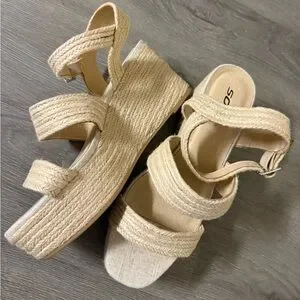 Elevate your look with these stylish beige wedges. Comfortable and versatile for any outfit.