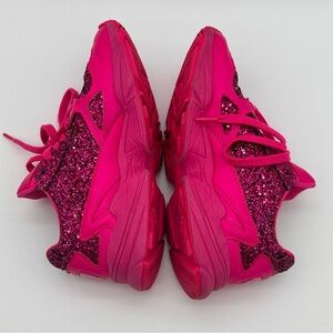 Vibrant pink sneakers with glittery accents. Stylish and bold design. Perfect for a standout look. Style BD8077