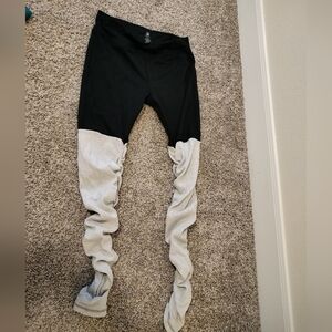 Stylish black and gray two-tone leggings. Perfect for yoga, gym, or hiking this summer. In gently used condition with some slight color fading on the grey portion of leggings. In great condition with lots of life left to give! Quality make.