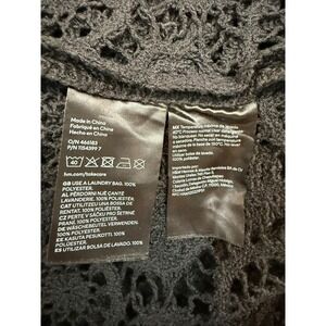 Gorgeous black crochet knit maxi dress by H&M, size Medium. Features long sleeves, crew neckline with back button closure, and a side slit. Thick, heavy knit with sheer open-crochet pattern—rare, sold-out style. Some stretch to fabric.