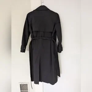 Perfect black trench in washable cotton. Side pockets and belt. Double breasted.