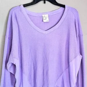 Cozy like new Aerie Offline slouchy oversized lavender waffle knit sweater with a V-neck design and thumb holes. Perfect for casual wear.