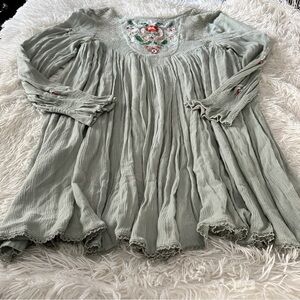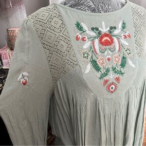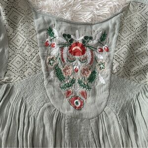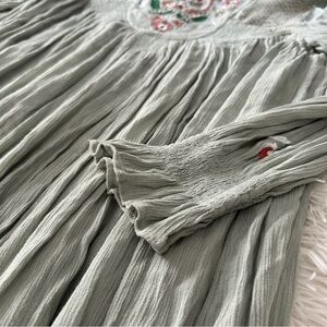 Free People Boho Embroidered Sage Babydoll Dress Cottagecore Prairie Lace M